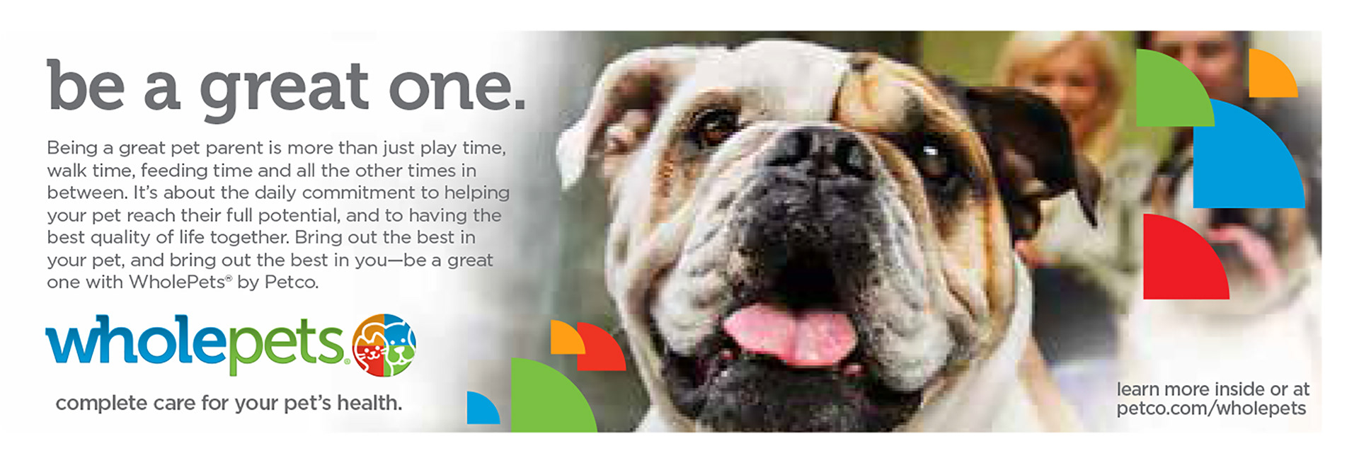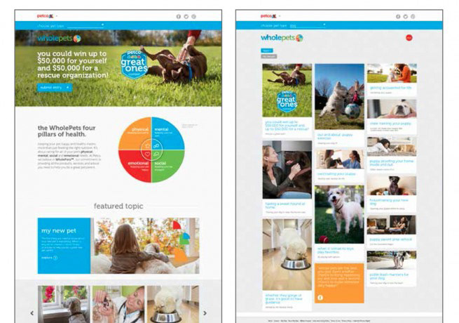 Objective: Create broad awareness and engagement through user generated content, to help Petco launch it's new WholePets pet health positioning — to care for your pets complete physical, mental, social and emotional health. We created a social media driven contest "Be a Great One," and promoted it in social media, online, at events, at Petco Park, through our Pals Rewards membership direct marketing, and in-store. The contest was entered exclusively through a Facebook app and asked people to enter why they think they are a great pet parent through an essay with photo or video entry. Many of the entries were extremely impressive and took substantial time to create — generating the desired increased impressions and sharing from the UGC. Some of the finalists were viewed tens of thousands of times. Finalists were selected each month, and the winner received $50,000 for themselves and $50,000 to a rescue organization. We received nearly 4,000 entries and over 100,000 unique page views, a quarter of which came from mobile.